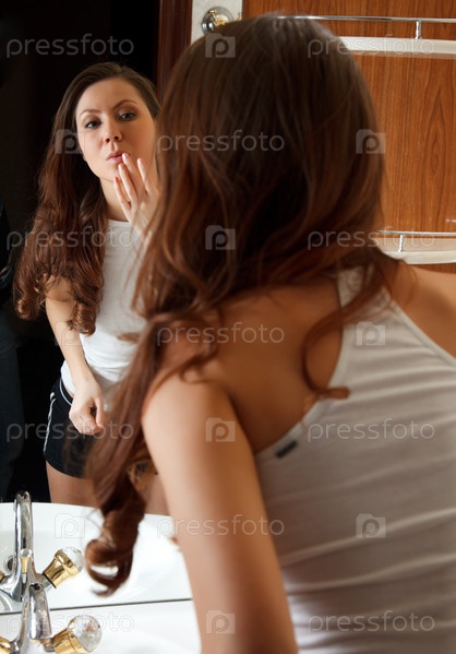 Девушка смотрит на себя в зеркало