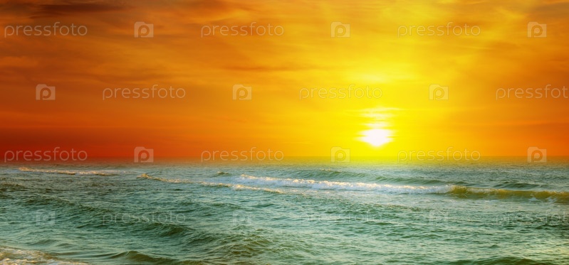Фантастический восход солнца на берегу океана