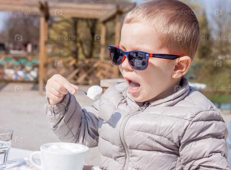 Маленький мальчик в кафе