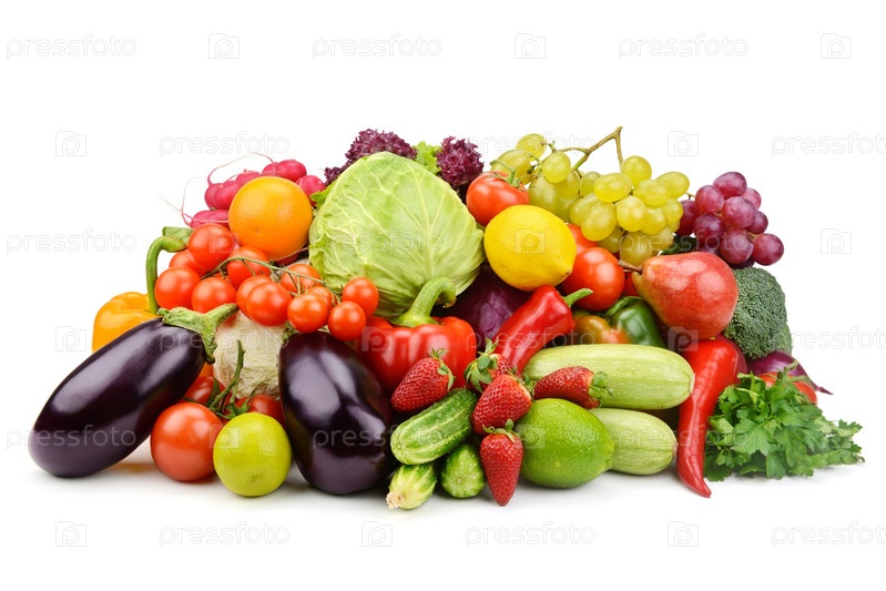 Овощи и фрукты, изолированные на белом фоне