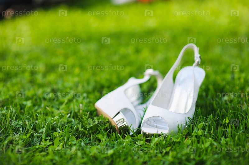 Белые туфли на зеленой траве
