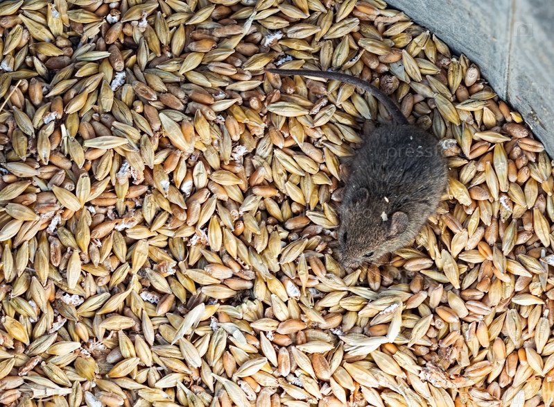 Мышь в куче зерна