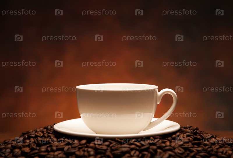 Белая чашка на кофейных зернах