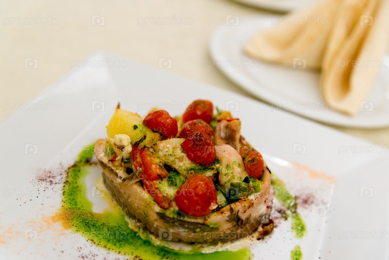 Рыба, запеченная с картофелем и помидорами