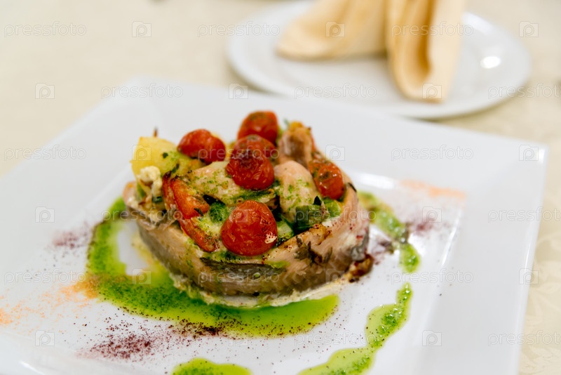 Рыба, запеченная с картофелем и помидорами