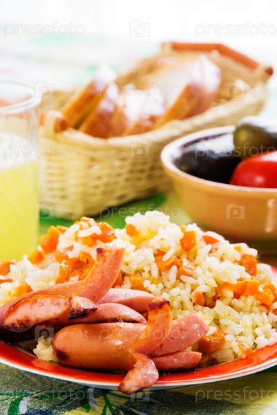 Сосиски с рисовой кашей