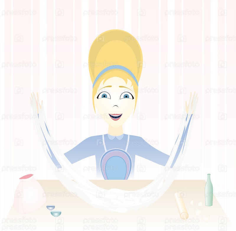 Девушка месит тесто на кухонном столе