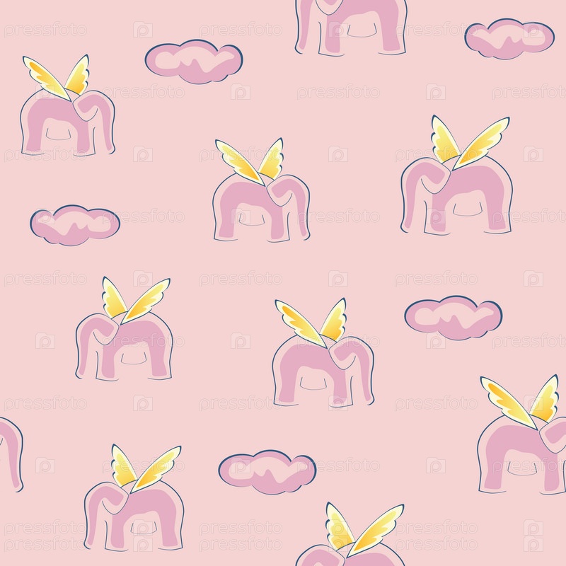 Бесшовный фон с розовыми летящими слонами