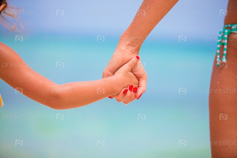 Мать держит дочку за руку