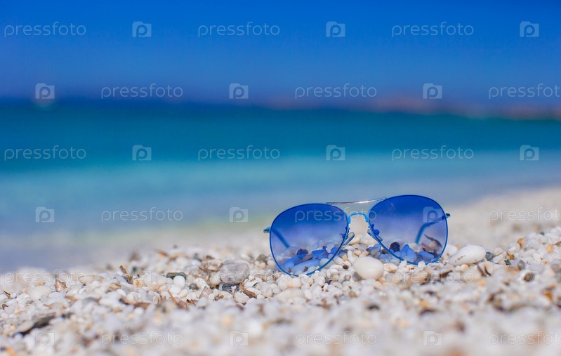 Синие очки на тропическом пляже