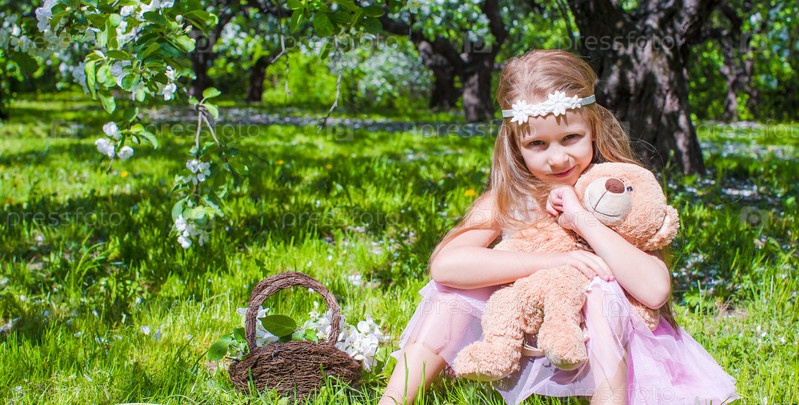 Маленькая девочка в цветущем саду