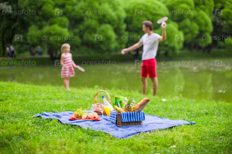 Счастливая семья на пикнике в парке