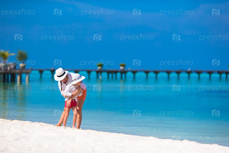 Маленькая девочка и мать во время пляжного отдыха
