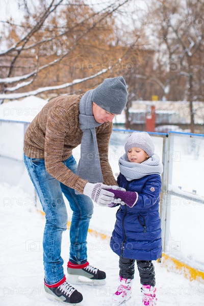 Отец с дочерью на катке