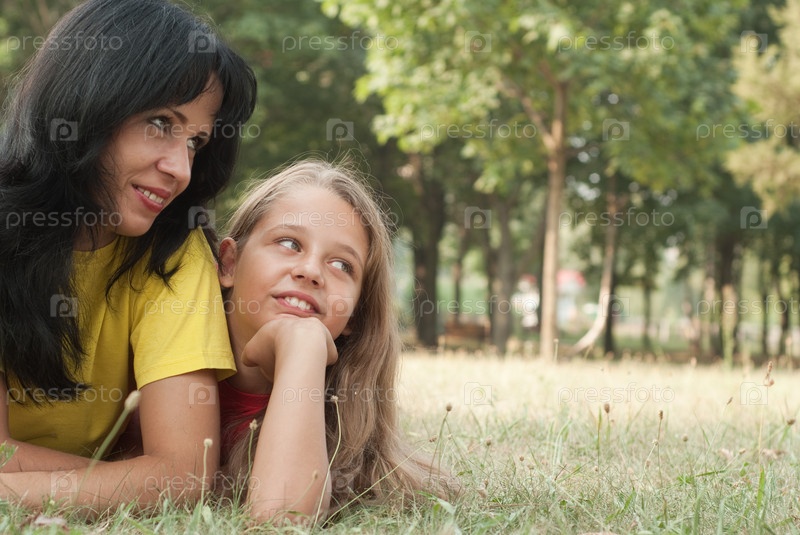Мама и дочка на прогулке в парке
