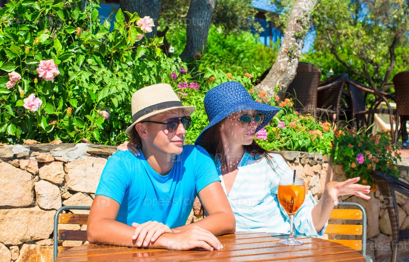Молодая пара в открытом кафе