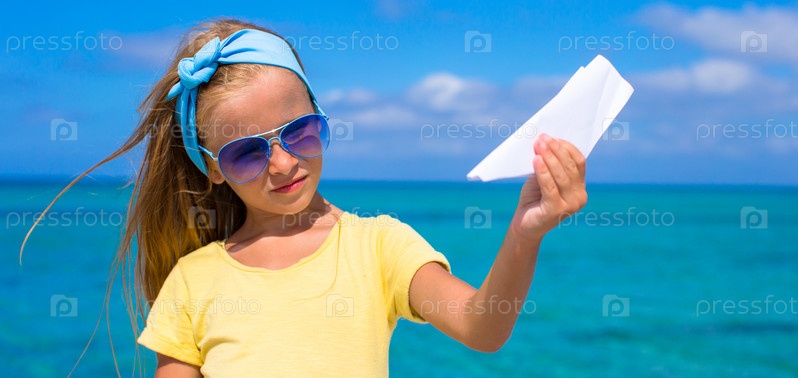 Маленькая девочка с бумажным самолетиком