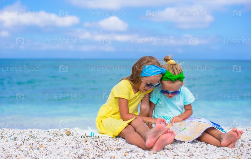 Девочки с картой на пляже