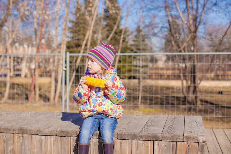 Девочка ест кукурузу в парке