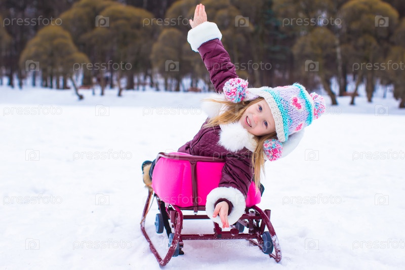 Очаровательная девочка на санках