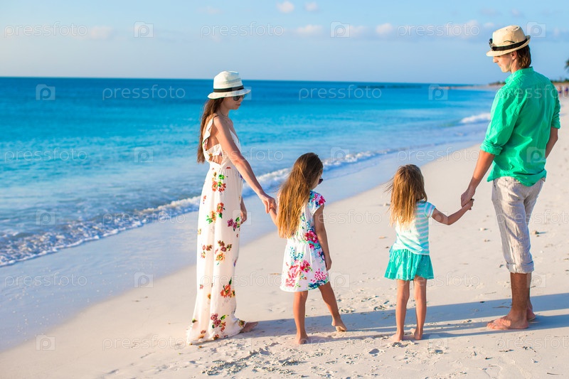 Молодая семья на пляже