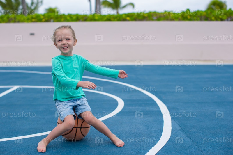 Маленькая девочка веселиться с баскетбольным мячом