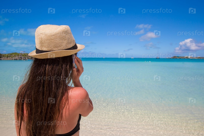 Девушка разговаривает по телефону на пляже