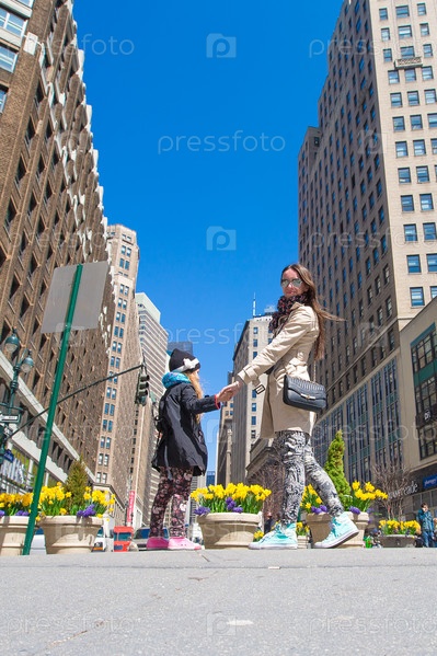 Маленькая девочка и мама в Нью-Йорке