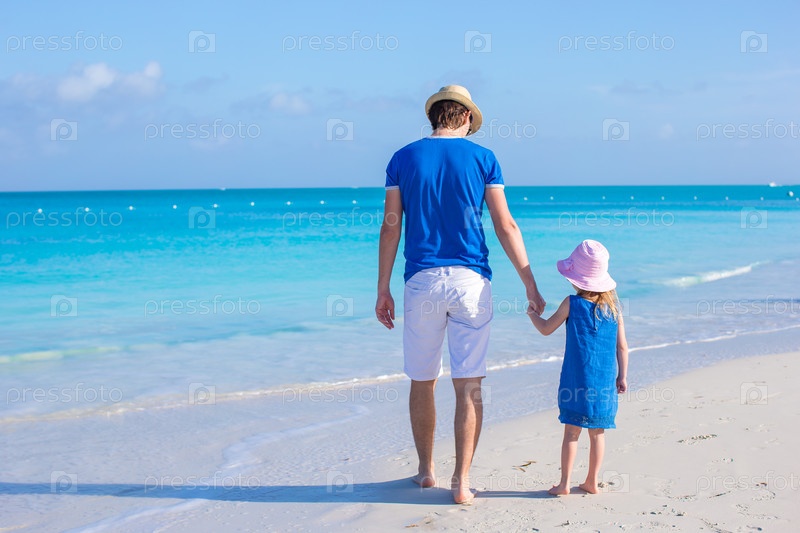 Маленькая девочка и отец на пляже
