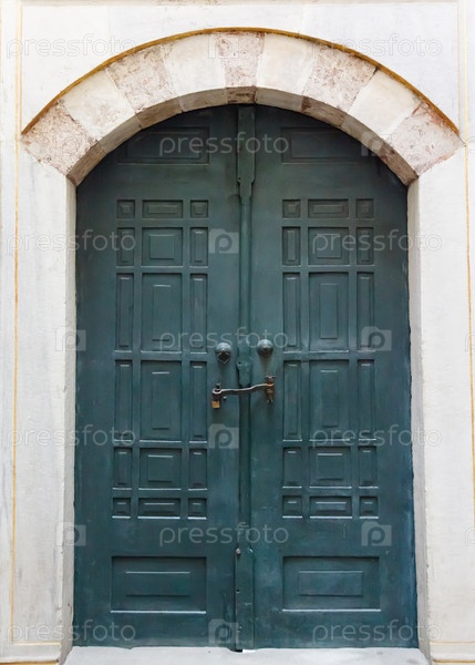 Зеленые старые деревянные двери в Стамбуле