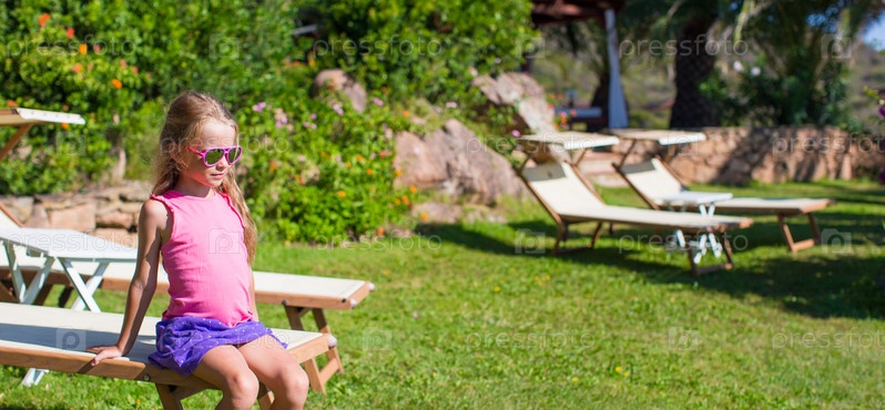 Маленькая девочка на шезлонге