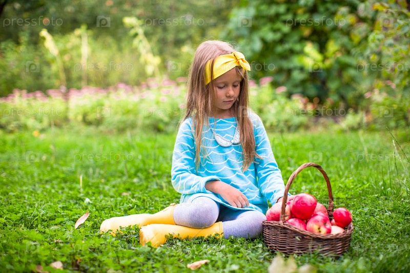 Маленькая девочка с корзиной яблок