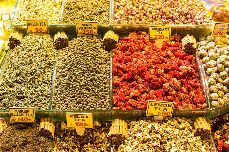Различные виды чая на базаре в Стамбуле