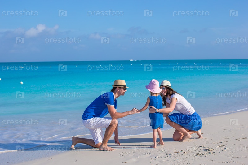 Счастливая семья, наслаждаясь пляжным отдыхом