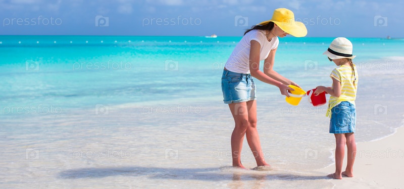 Мать и маленькая девочка на пляже