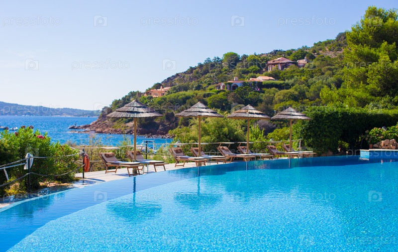 Шезлонги и бассейн