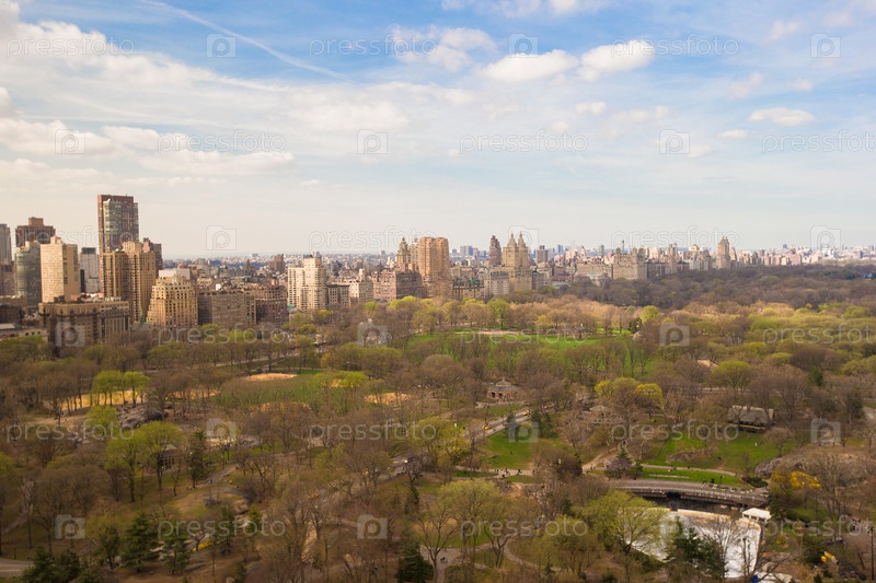Осенний вид центральный парк из окна отеля, Манхеттен, Нью-Йорк