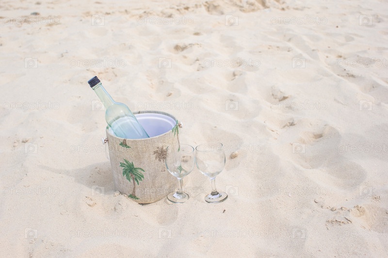 Бутылка вина на песчаном пляже