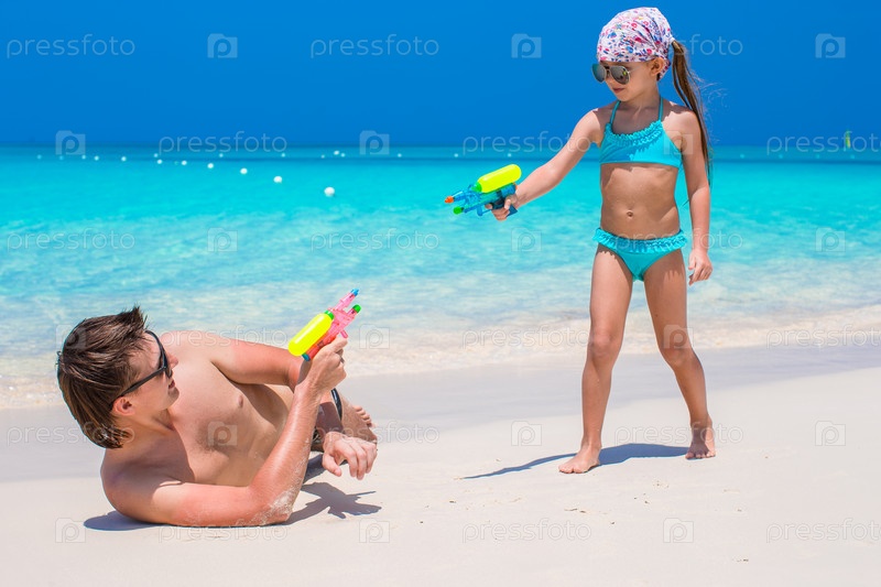 Отец и дочь на тропическом пляже