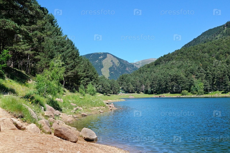 Озеро, горы и голубое небо