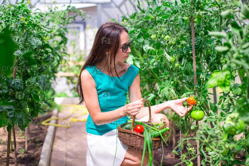 Молодая женщина собирает урожай