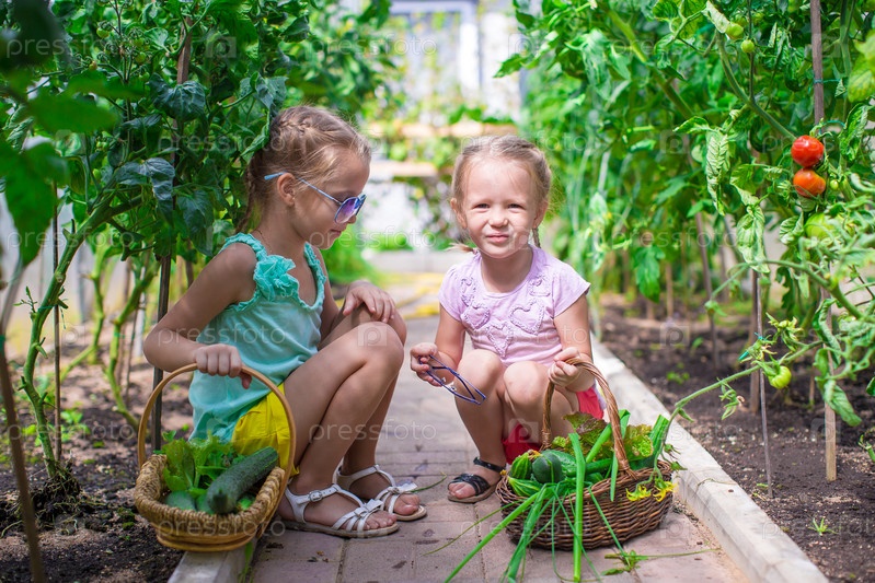 Симпатичные маленькие девочки в теплице