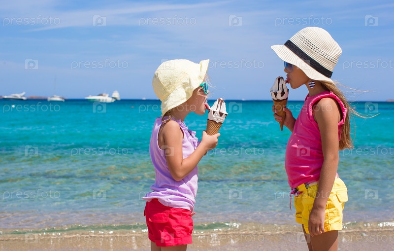 Девочки едят мороженое