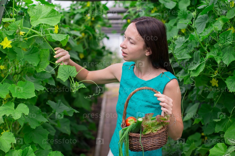 Молодая женщина собирает урожай
