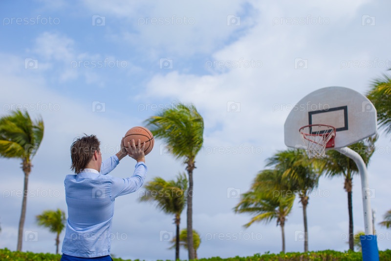 Молодой человек играет в баскетбол