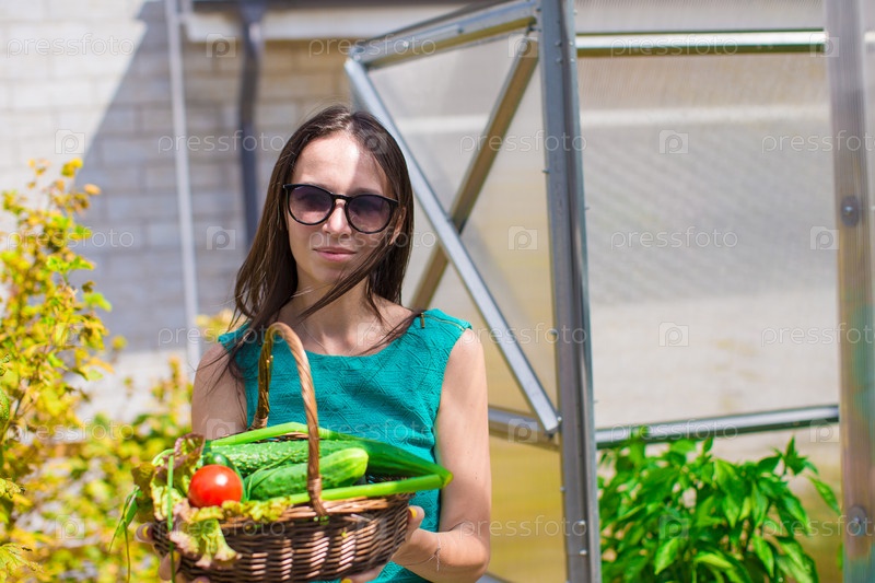 Молодая женщина с корзиной овощей
