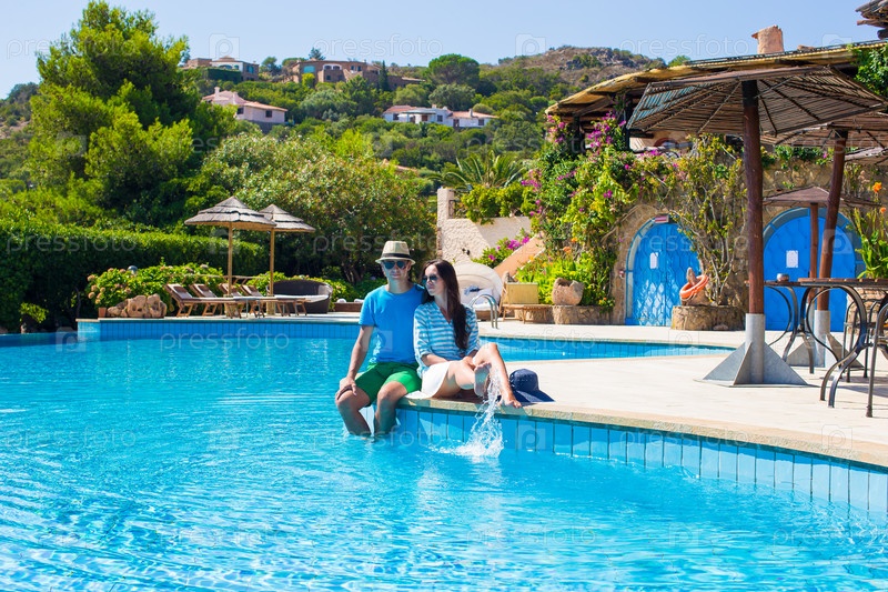 Молодая пара у бассейна