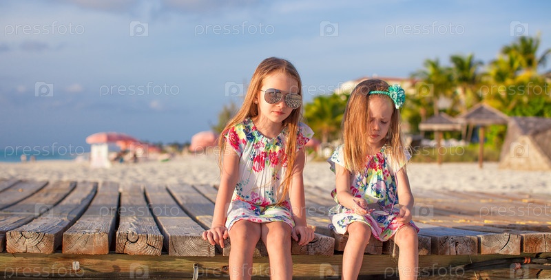 Две девочки сидят на пирсе