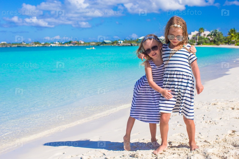 Две очаровательные девочки на пляже