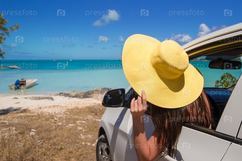 Молодая привлекательная женщина в автомобиле